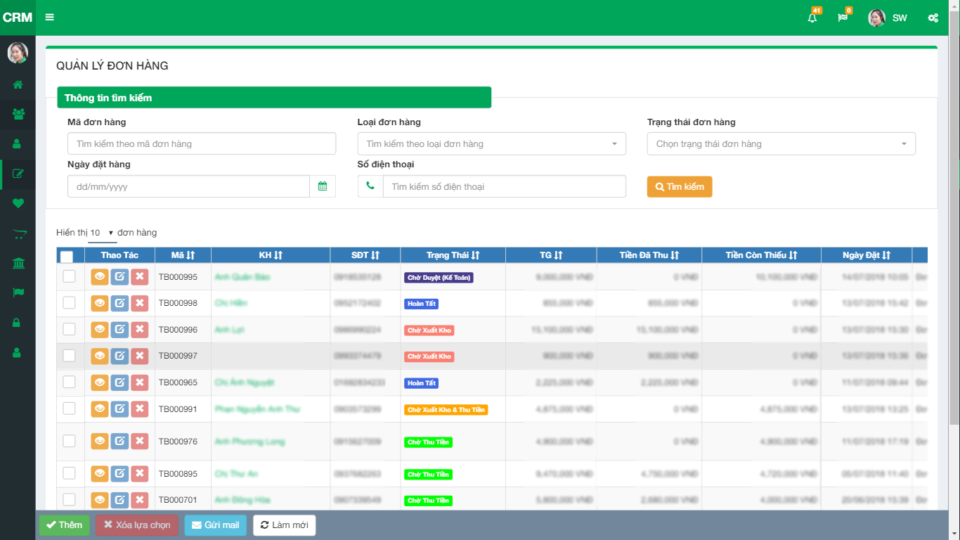 Quản lý thông tin khách hàng, đơn hàng, lịch sử bán hàng,... giúp tìm kiếm và phân loại chuẩn xác từng nhóm KH, từ đó, triển khai kế hoạch chăm sóc & tiếp cận hiệu quả.