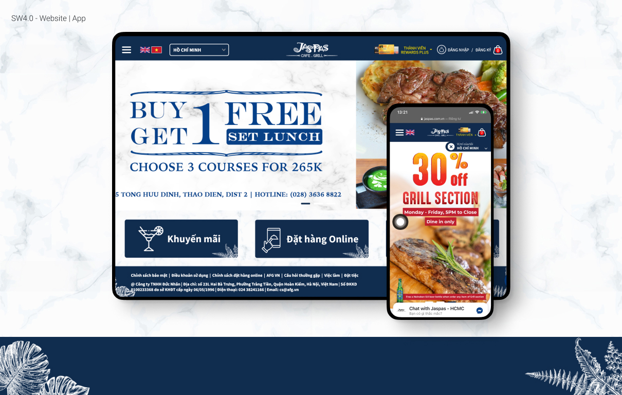 SoftWorld hợp tác cùng Jaspas Restaurant trong phát triển ứng dụng Web & App Order hoạt động như một Loyalty App riêng biệt của doanh nghiệp cung cấp các tính năng nổi trội: